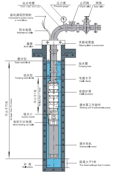 QJ型井用潛水泵是電機與水泵直聯(lián)一體潛入水中工作的提水機具,它適用于從深井提取地下水、也可用于河流、水庫、水渠等提水工程:井用潛水泵主要用于農(nóng)田灌溉及高原山區(qū)的人畜用水,亦可供城市、工廠、鐵路、礦山、工地供排水使用。